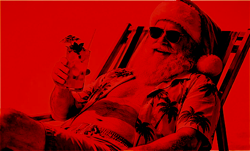 santa typing on a laptop